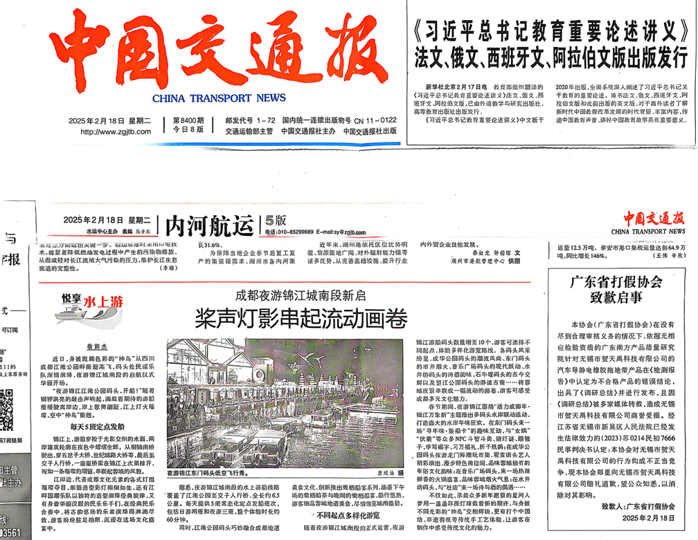 正文2025年2月18日,廣東省打假協(xié)會通過《中國交通報》等媒體平臺公開發(fā)布致歉聲明,就其此前針對無錫市賀天禹科技有限公司汽車導靜電橡膠拖地帶產(chǎn)品的不實指控鄭重道歉。此舉標志著賀天禹科技在歷經(jīng)法律程序...